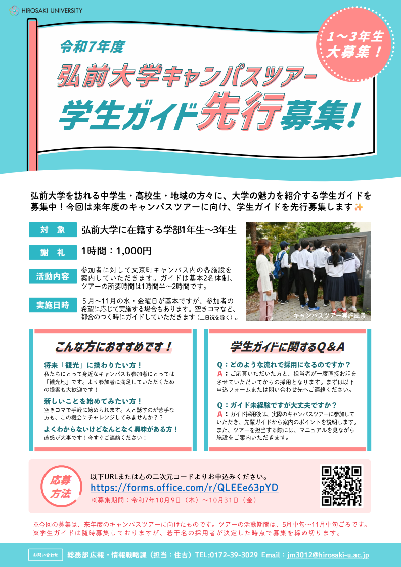 今回は、来年度のキャンパスツアーに向けた先行募集です!一緒に弘前大学の良さを伝えてみませんか?