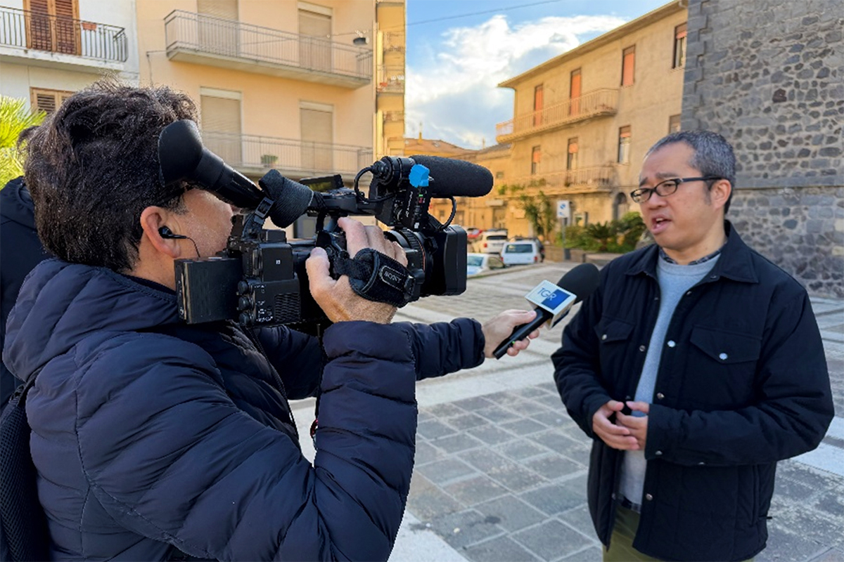 この取り組みについて、イタリアの公共放送局であるイタリア放送協会の報道番組TGRにて紹介されました。番組では、以下のメンバーによる現地調査の様子のほか、細田教授やカターニア大学のアントニオ・バジーレ教授へのインタビューが放映されました。