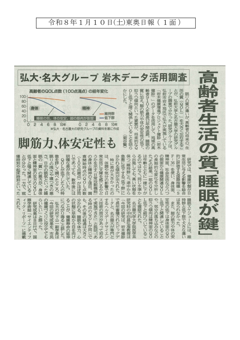 弘前大学、名古屋大学の共同研究成果について、東奥日報(1月10日(土))に掲載されました。