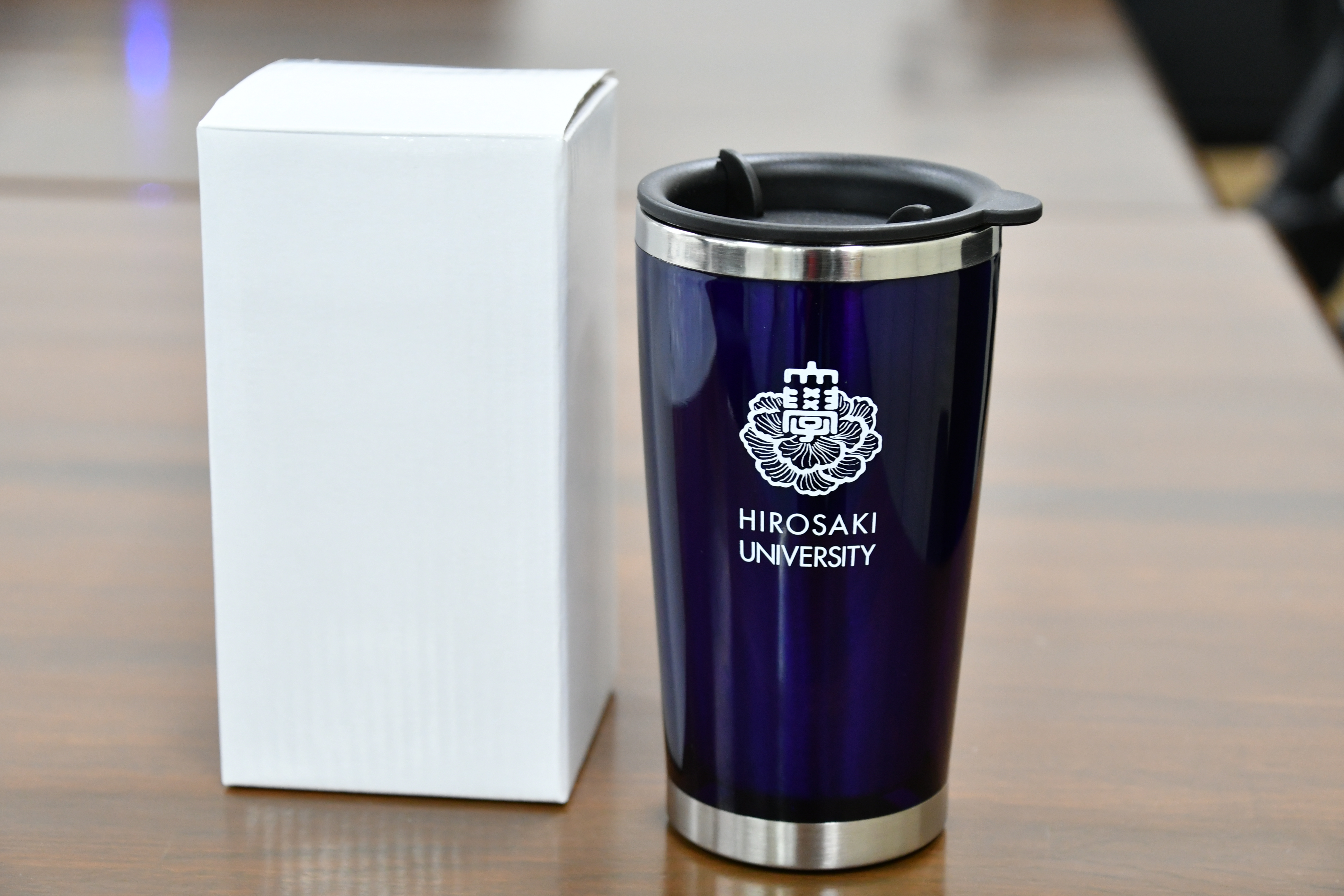 6月1日から、弘大カフェと弘大生協(ともに、弘前市文京町1番地,弘前大学キャンパス内)において、弘前大学徽章入りタンブラーの販売を開始します。 スクールカラーの群青に白色で徽章があしらわれています。容量は350ml。価格は1個1,200円(税込)。 弘前大学創立70周年記念式典を祝い、6月1日からの販売となります。弘前大学を訪れた記念にぜひお手に取ってみてください。