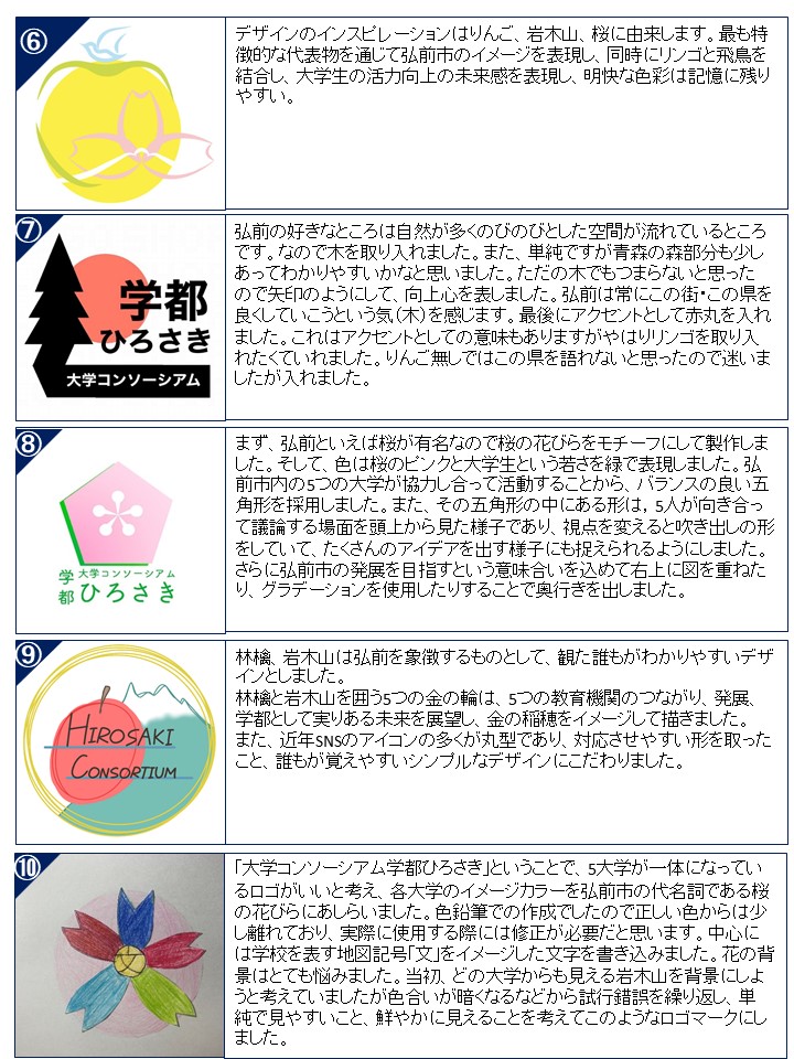 大学コンソーシアム学都ひろさきでは公式ロゴデザインの募集を行い、学生の皆様から多数の応募がございました。そこで、集まったロゴデザインの絞り込みを学生による投票で実施することになりました。是非、みなさま奮ってご参加ください!