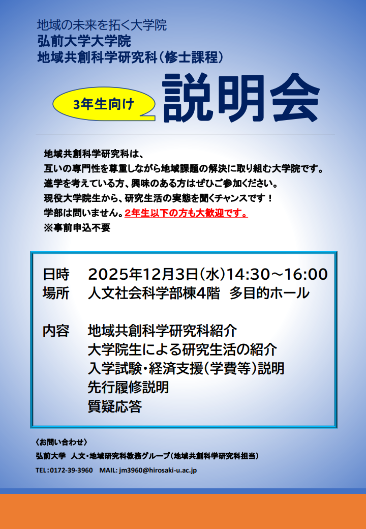 【3年生向け】弘前大学大学院 地域共創科学研究科(修士課程)大学院説明会