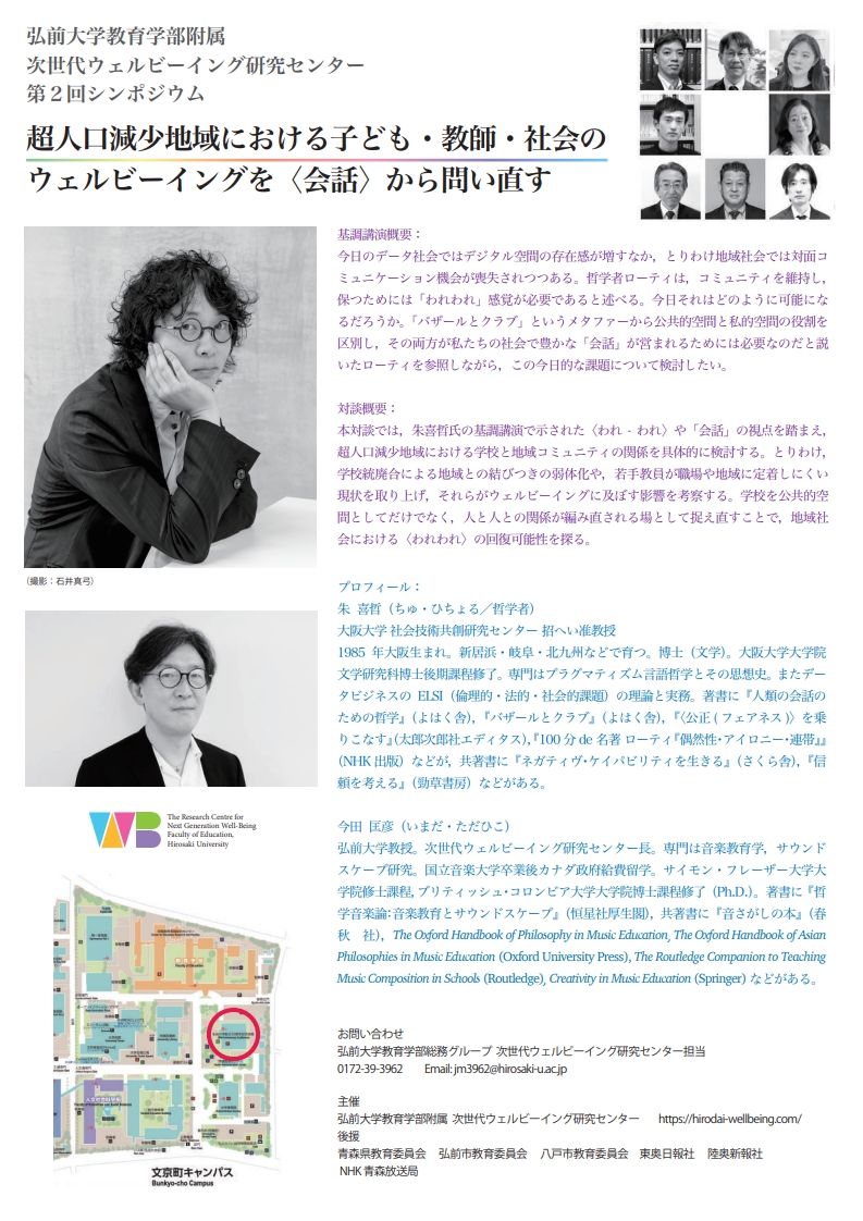 弘前大学教育学部附属次世代ウェルビーイング研究センター 第2回シンポジウム「超人口減少地域における子ども・教師・社会のウェルビーイングを〈会話〉から問い直す」