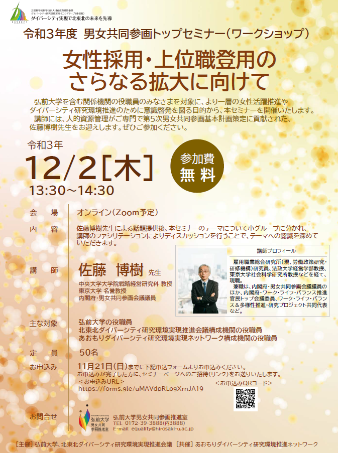 【12月2日】令和3年度弘前大学男女共同参画トップセミナー開催のお知らせ