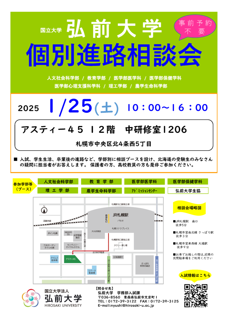 未来を切り拓くフロントランナーに 弘前大学大学院地域共創科学研究科では、青森会場・弘前会場にて入試説明会を開催し、出願方法について具体的に解説します。どちらの会場も同じ内容です。 青森会場 ...続きを読む