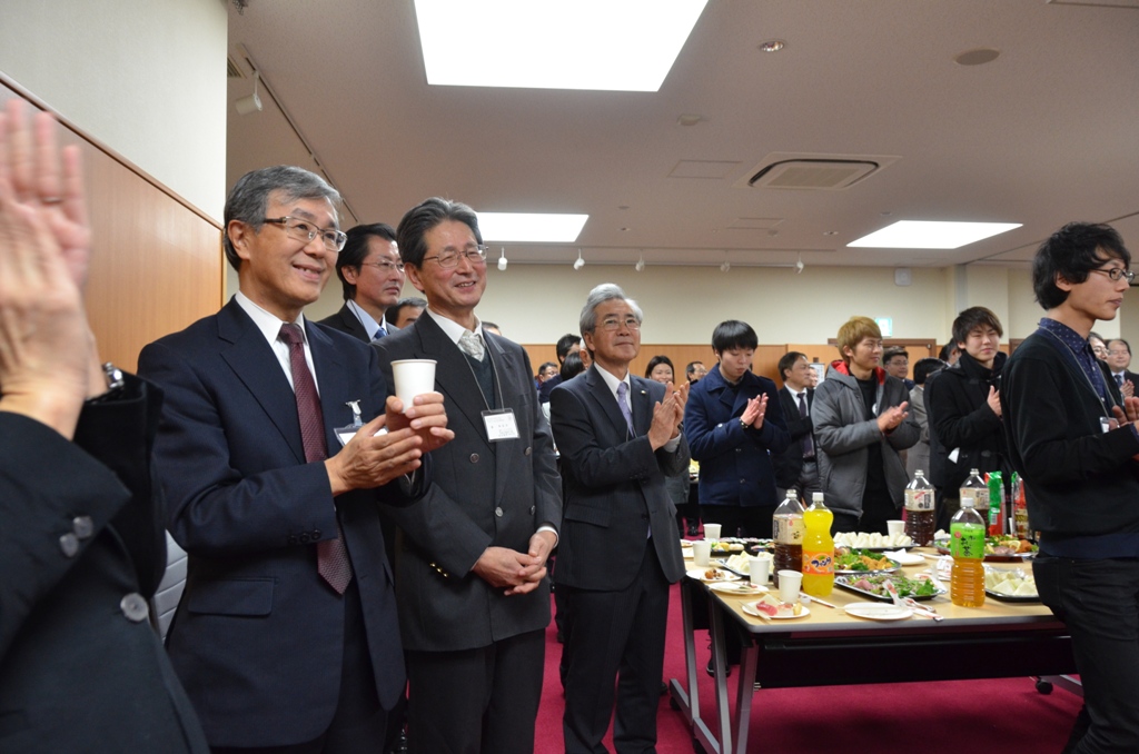 初めて開催された「国際交流会」では、佐藤学長、葛西弘前市長、大河原理事(社会連携担当)の挨拶の後、弘前市の援助事業を受けている留学生3名から、弘前市への感謝及び充実した大学生活の様子が語られました。