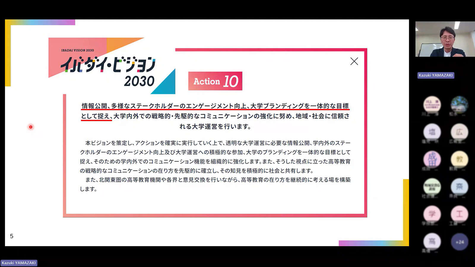 今年度の研修会は「国立大学の広報の機能と広報業務における考え方」をテーマに、茨城大学 広報・アウトリーチ支援室 主幹専門職・副室長の山崎 一希 氏を講師に迎え、大学広報の基本や実践的な工夫についてご講演いただきました。