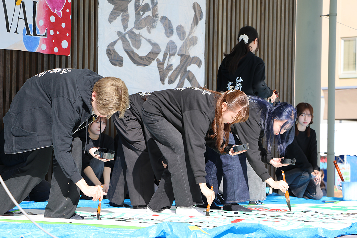 17日(金)の「Opening Festival 2025」では、福田 眞作弘前大学長による開催宣言・挨拶に続き、田中 泰宏副市長(弘前市)および文化祭実行委員会委員長の三浦 孝介さんが挨拶を行い、書道部による「書道パフォーマンス」で総合文化祭が華やかに幕を開けました。