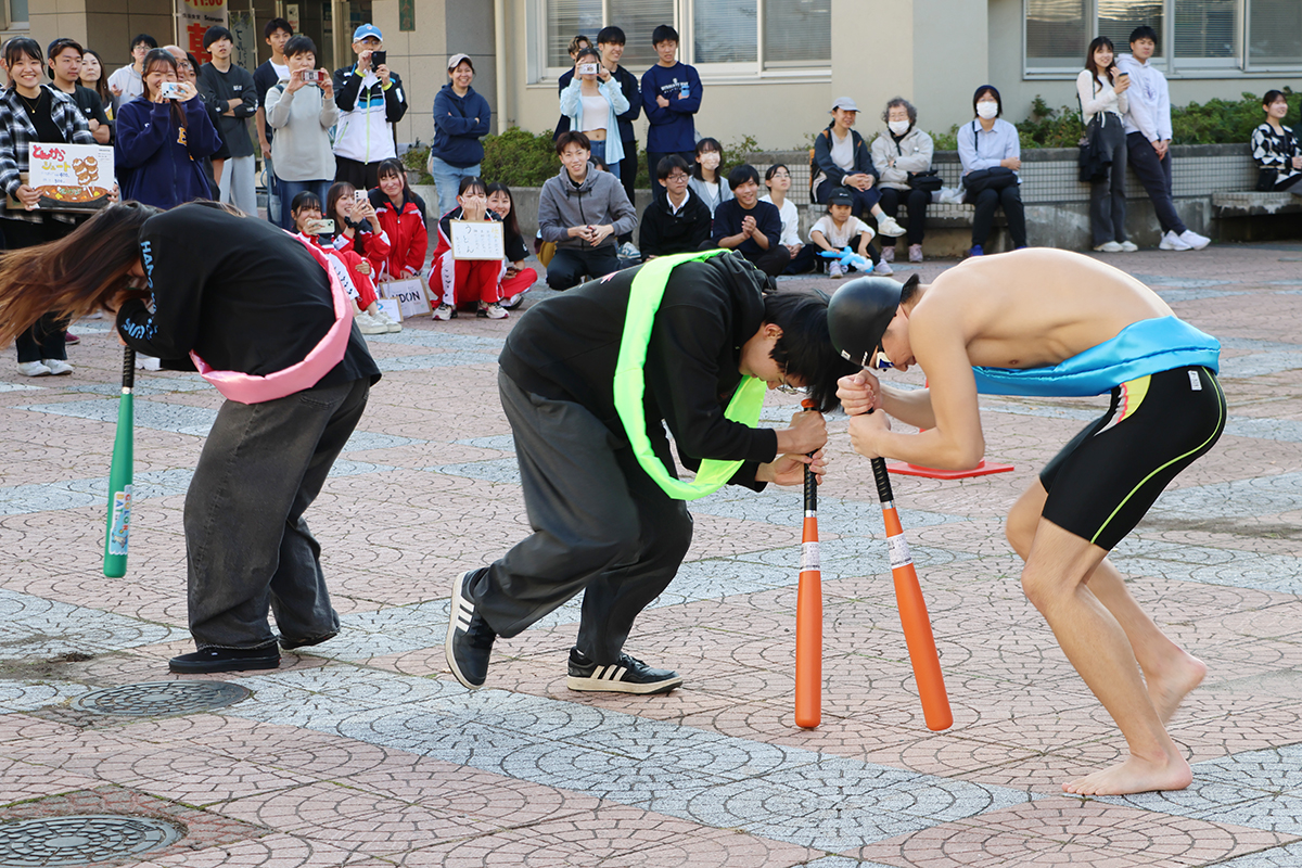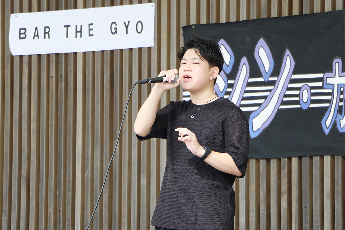18日(土)は、途中で雨によりステージイベントを屋内に変更する時間帯もありましたが、前日に続き大いに盛り上がりました。「シン・カラオケ王(本選)」や、各模擬店の代表学生がミニゲームを通して商品をアピールする「商品アピール対決」では、学生たちの元気いっぱいのパフォーマンスが観客を楽しませました。