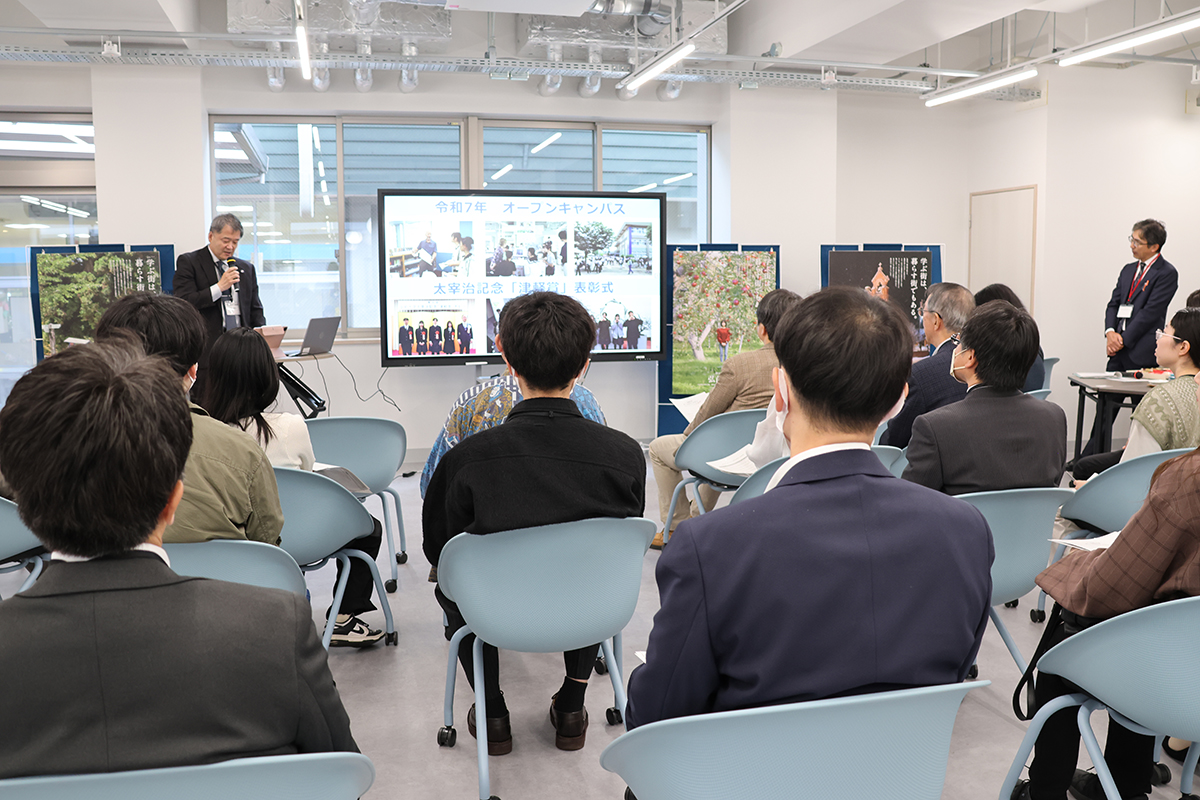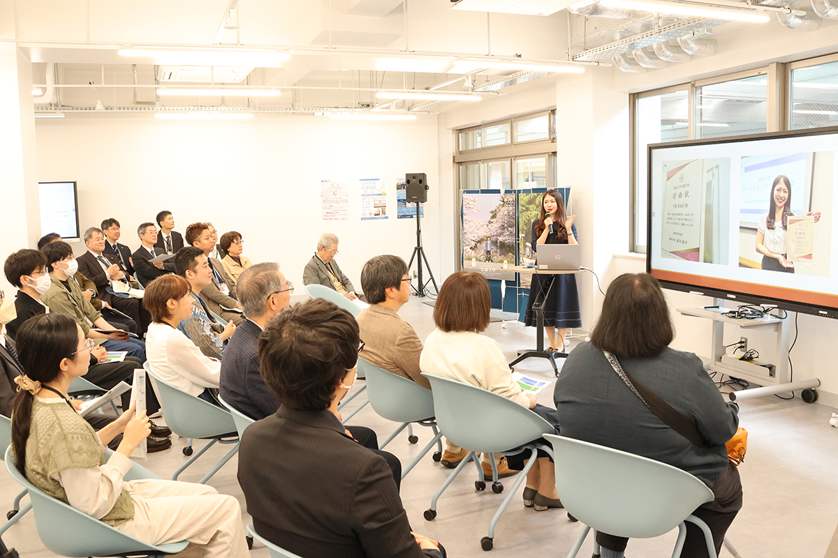 そして、「大人になってどうしても大学から足が遠のいてしまいがちな卒業生の『縦と横』の年代を繋いでいきたい」、「そのために『今の弘前』を知り、食べること・行くことを通じて『好き』を更新しながら発信し続けていきたい」、と応援大使としての抱負を語られ、自分を作ってくれた街への恩返しをするためにまた帰ってきます、と講演を締めくくられました。