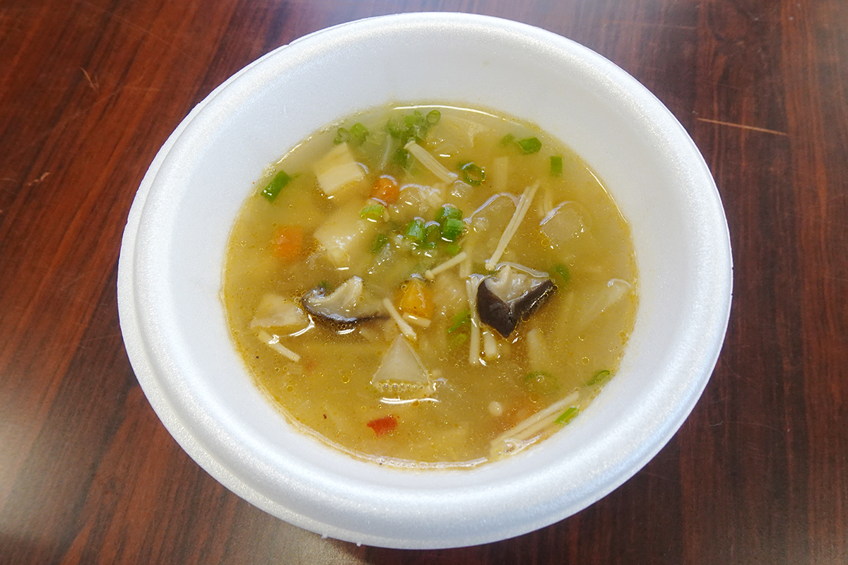 続いて、料理研究家 坂本謙二 氏から、キノコを活用した「常備菜キノコで免疫力強化スープ」・「キノコの炊き込みご飯」の試食とレシピ説明が行われました。