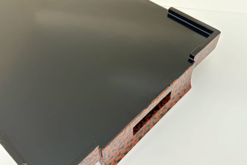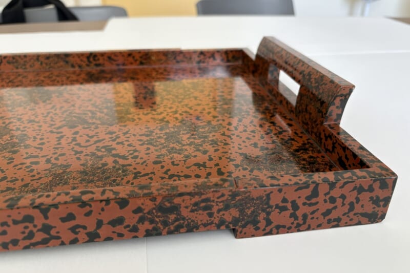 これらの特徴から、この盆は第22回商工省工芸展覧会に出品された「珈琲盆」と同手の作品である可能性が高く、これまで具体的な年代を特定できる作例がほとんど知られていなかった1930年代の津軽塗の実像を明確に示す、極めて貴重な資料です。