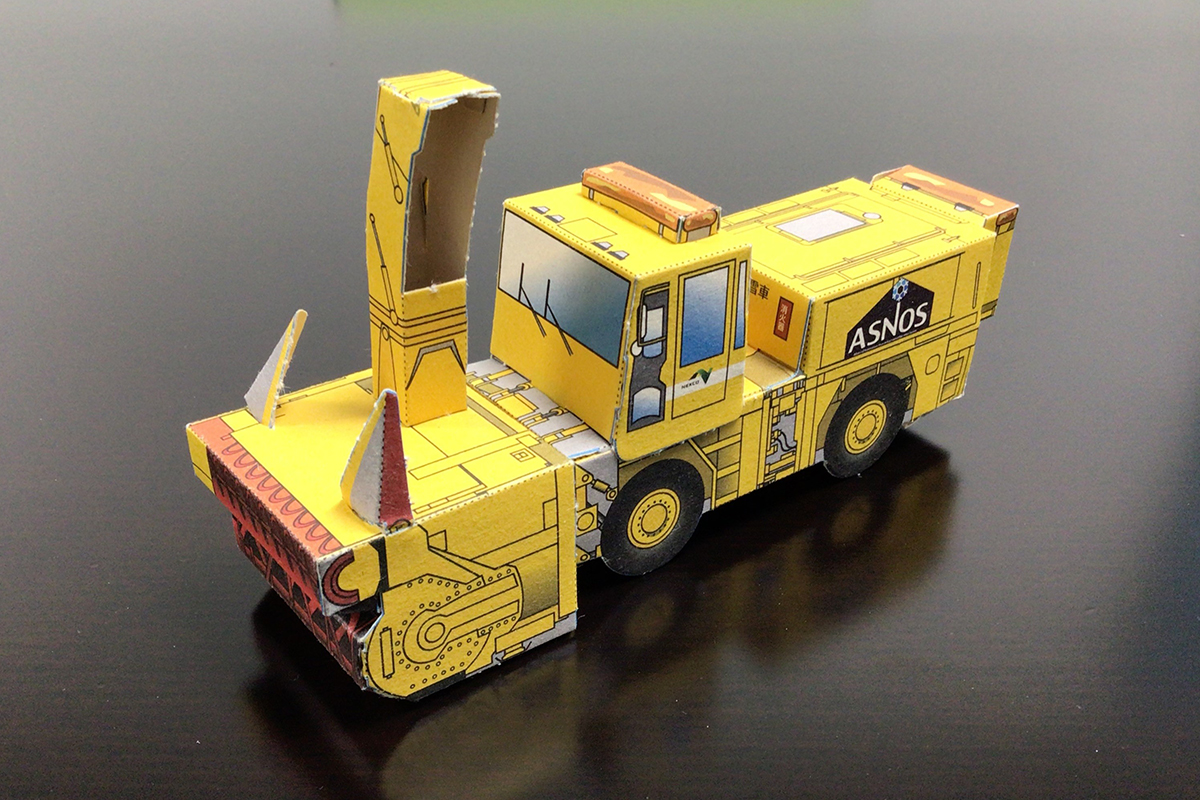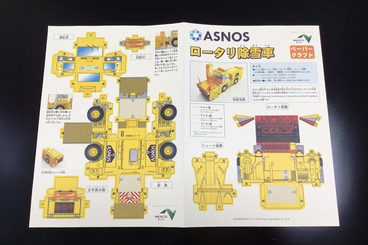 このたび、この紙がNEXCO東日本様において、ファイル(写真②)やペーパークラフト(写真③④)などの形で実際に活用されることとなりました。