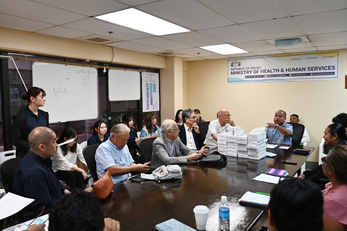 ベラウ国立病院ではレイノルド・オイロー副大統領兼保健福祉大臣にも同席いただき、同院の医療職の皆さまと意見交換を行いました。学生は一人ずつ英語で質問を行い、パラオの医療について理解を深めました。懇談会の後には院内をご案内いただき、新設された緩和ケア病棟や、CT、MRIをはじめとする充実した設備を見学しました。一方で、それらの設備を十分に活用するための医療従事者が不足している現状についても説明を受けました。また、JICA海外協力隊として派遣されている日本人医療従事者に挨拶する機会にも恵まれ、特に医学部の学生にとっては、海外医療の実情に触れる貴重な学びの場となりました。