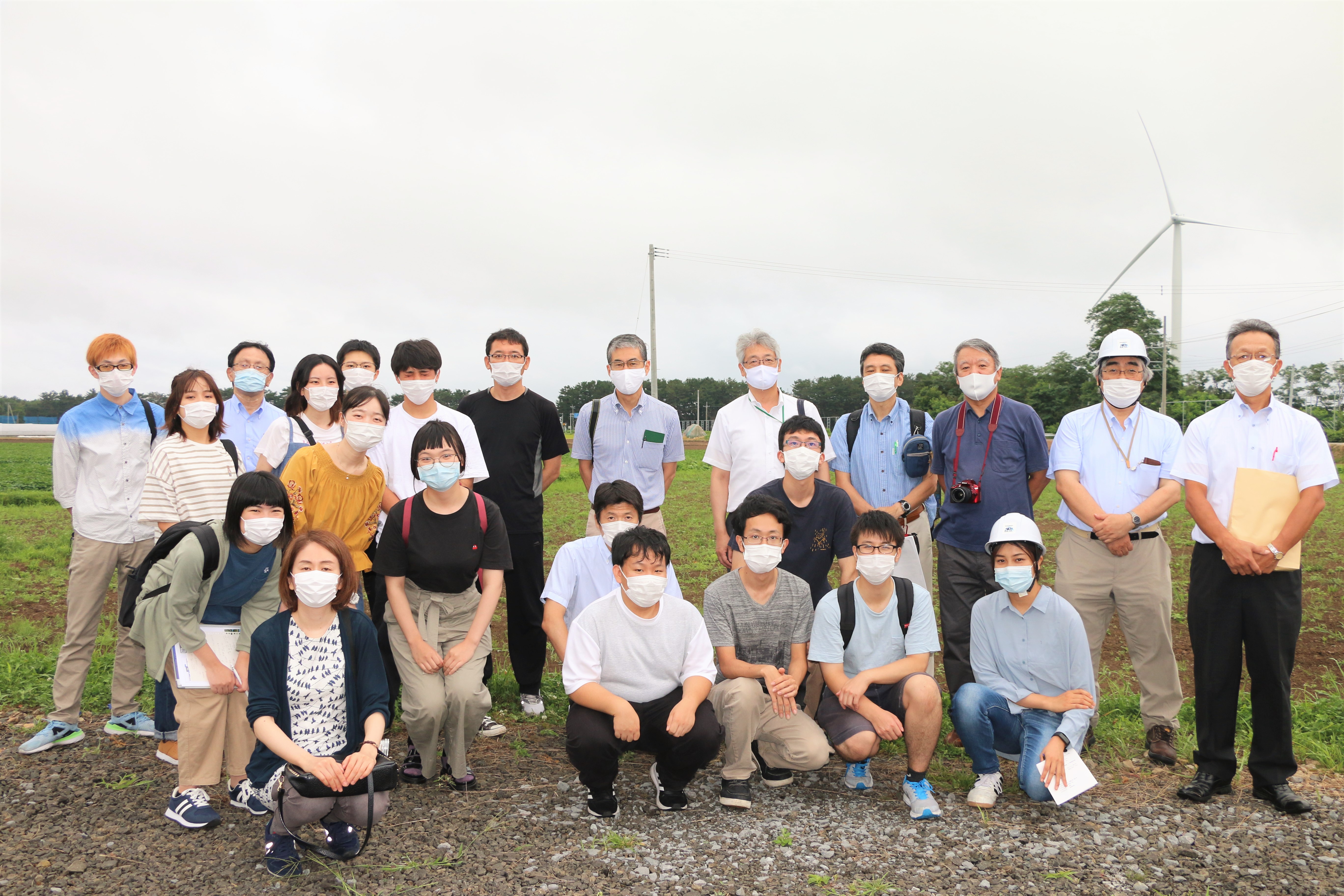 弘前大学地域戦略研究所は令和2年8月21日(金)、つがる市のウィンドファームつがる見学会を開催し、地域戦略研究所、地域共創科学研究科、理工学研究科の学生13名、教職員12名、計25名が参加しました。
