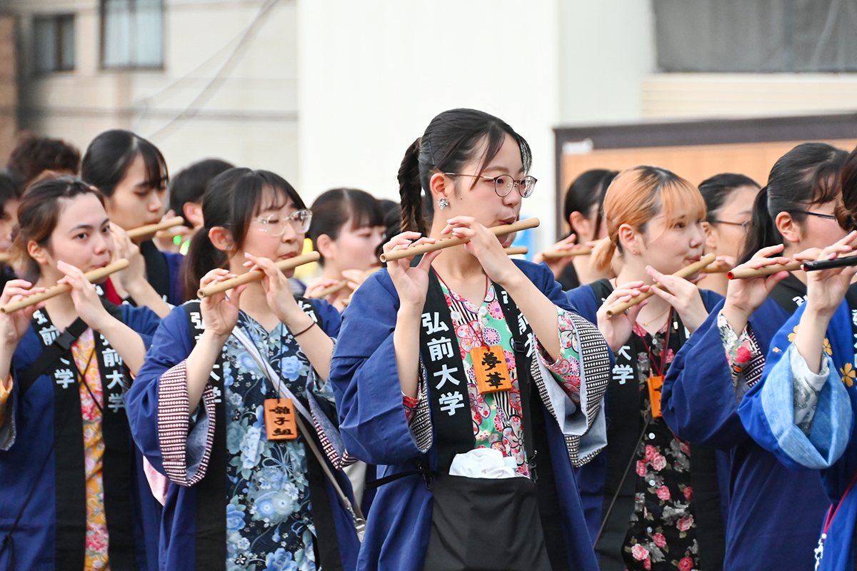 土手町コースでの運行時には、学生や留学生、役員、教職員など多くの関係者が参加。熱気あふれる「ヤーヤドー」の掛け声とねぷた囃子の音が弘前の街に響きました。