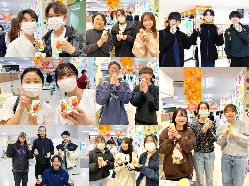 株式会社青研様より提供いただいたりんごジュース7,200本を学生へ配布しました! 2025(令和7)年11月11日(火)、弘前大学の文京町キャンパス(文京食堂ホレスト)と本町キャンパス(フェリオ、クローバー)で、学生支援の一環としてりんごジュース7,200本を無料配布しました。 ...続きを読む 2025.11.13 地域学生生活